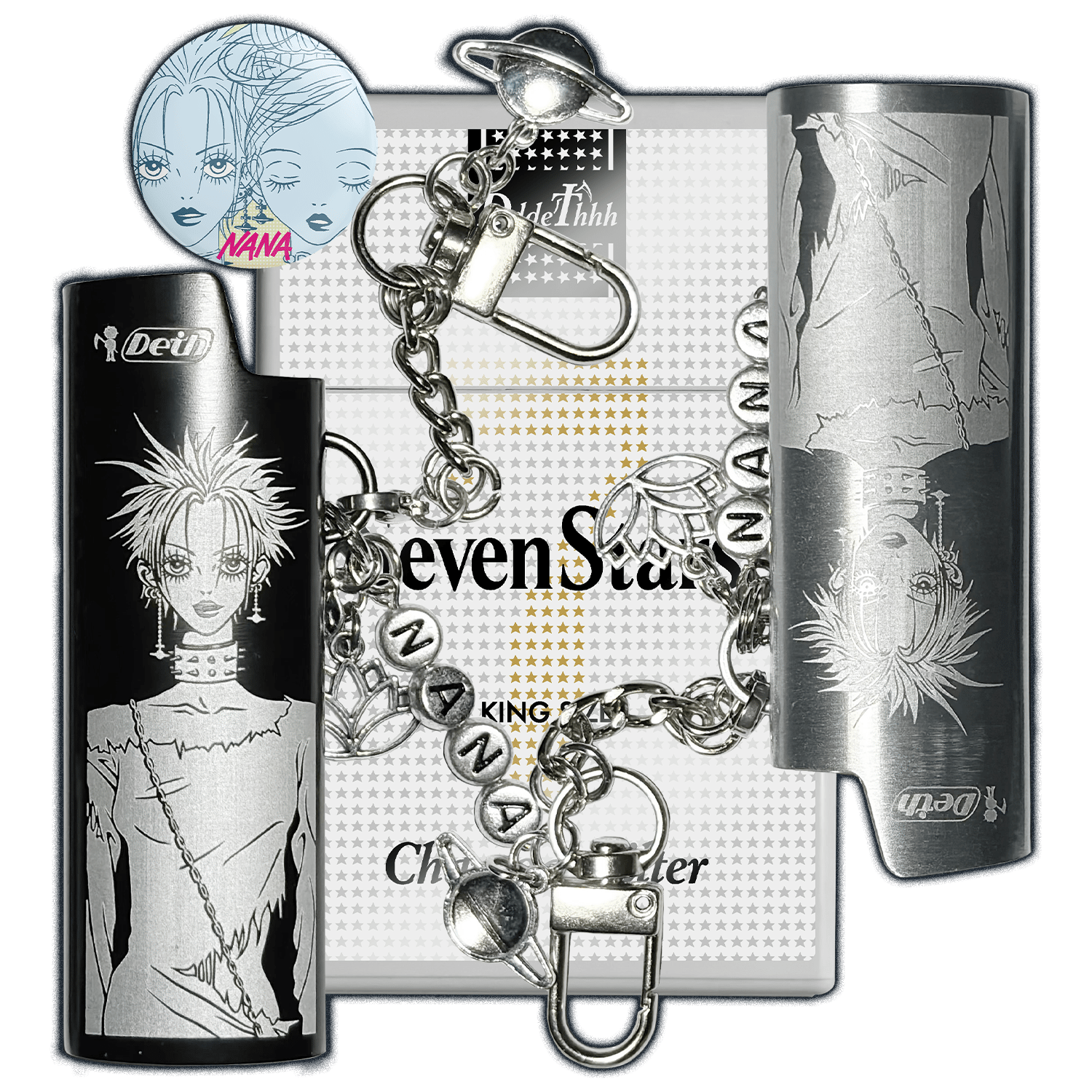 Nana & Hachi Metal Lighter Case [Black & Silver]